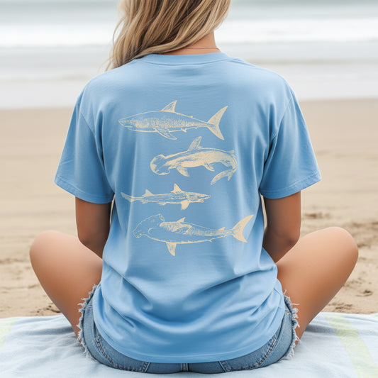 Ocean Sharks Graphic T-Shirt – Coastal Beach Tee for Ocean Lovers