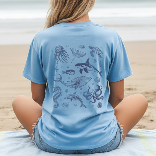 Ocean Life Graphic Tee – Sea Creatures Unisex T-Shirt / Marine Art Shirt / Beach Vibes Tee