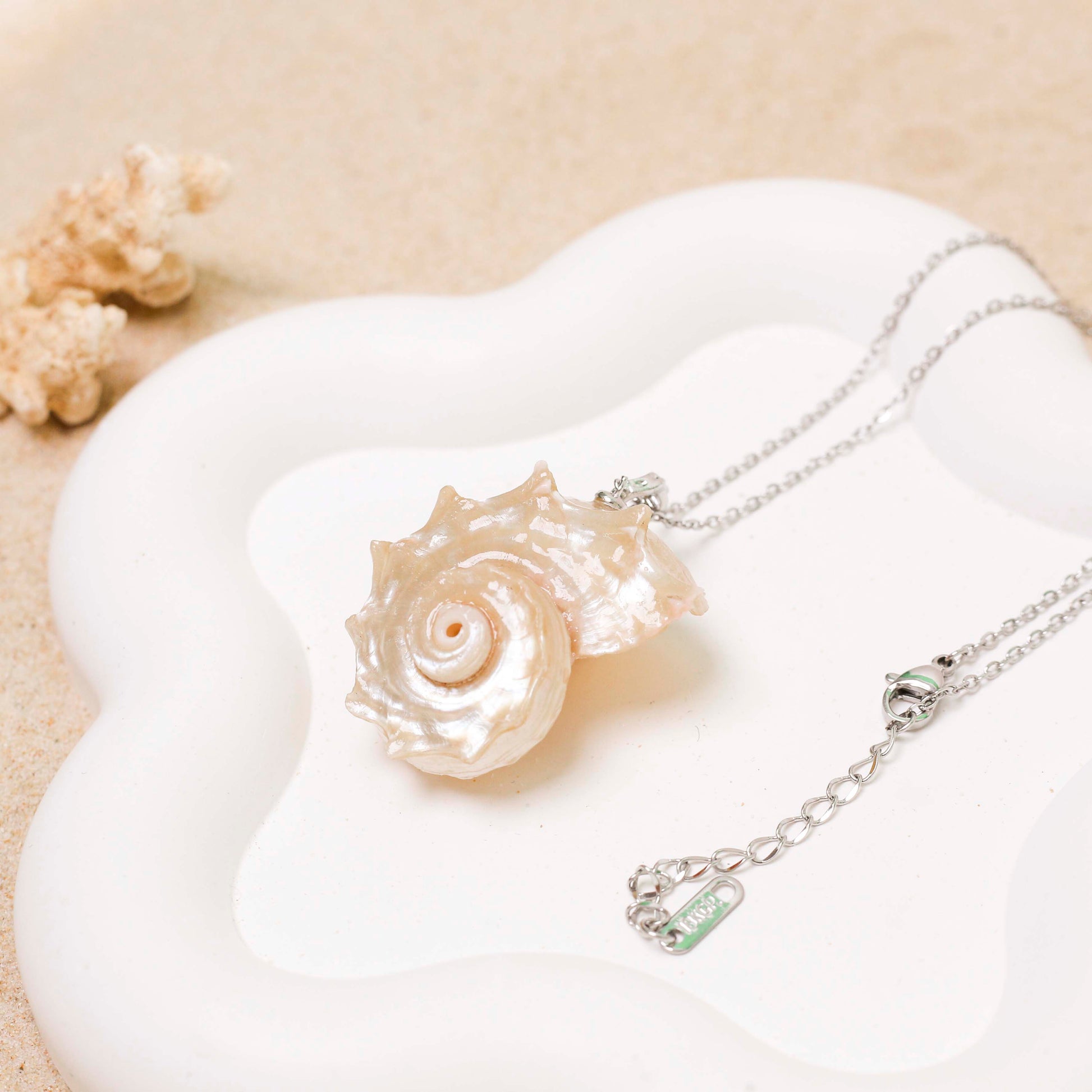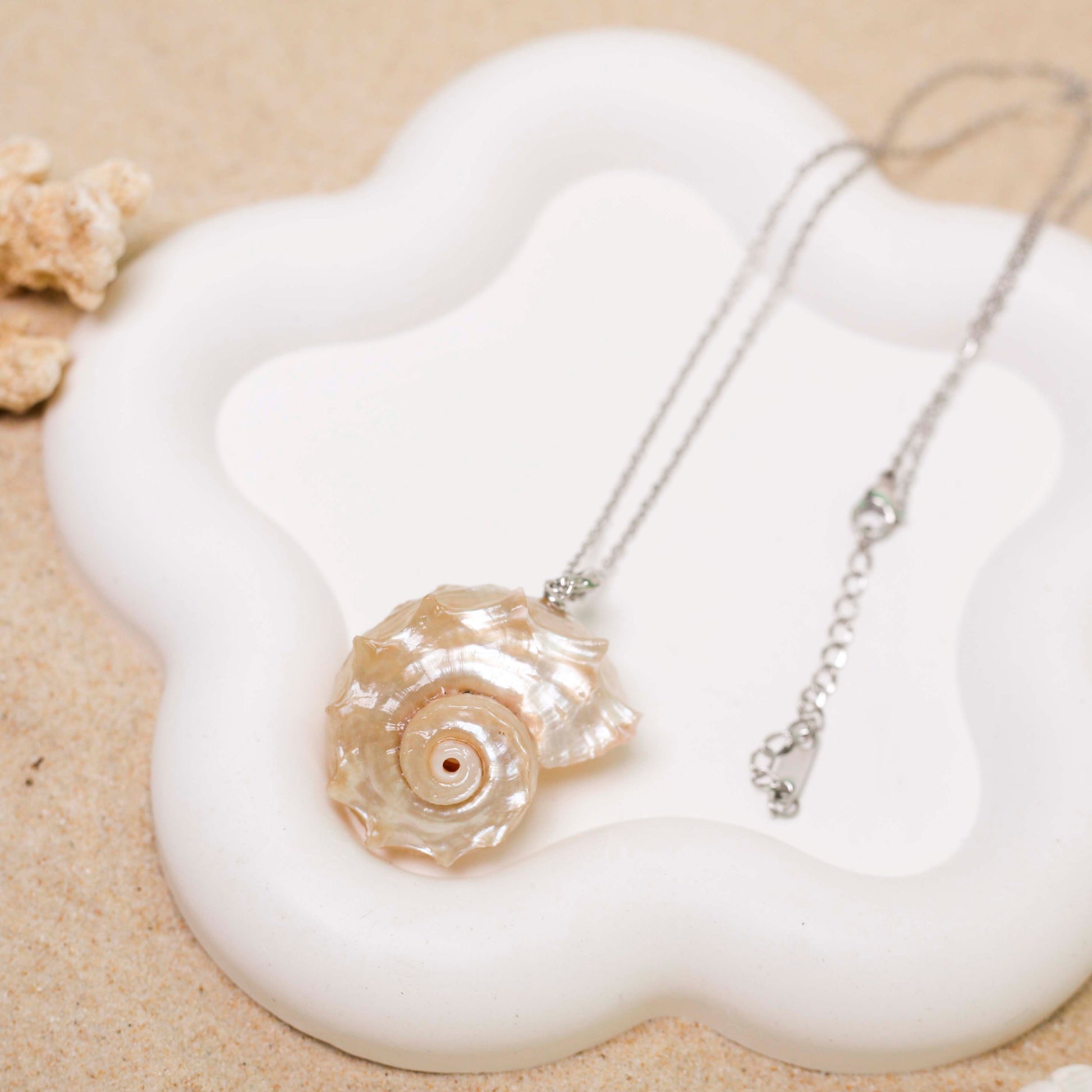 Featuring a genuine seashell with a lustrous pearlescent finish, each piece is one-of-a-kind — showcasing nature’s artistry in every swirl.